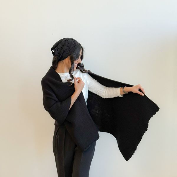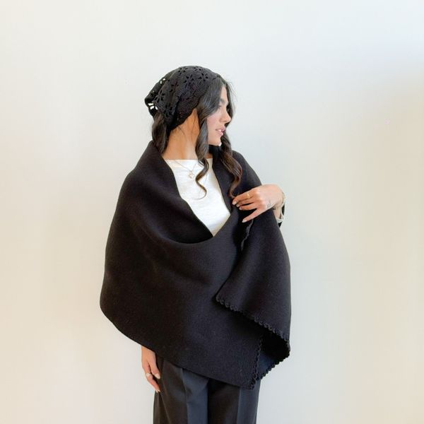 اشارپ زنانه شاهو مدل: Noir Grace با رنگ مشکی عمیق و طراحی ساده و مستطیلی (60×180 سانتیمتر)، نمادی از وقار و ظرافت است.